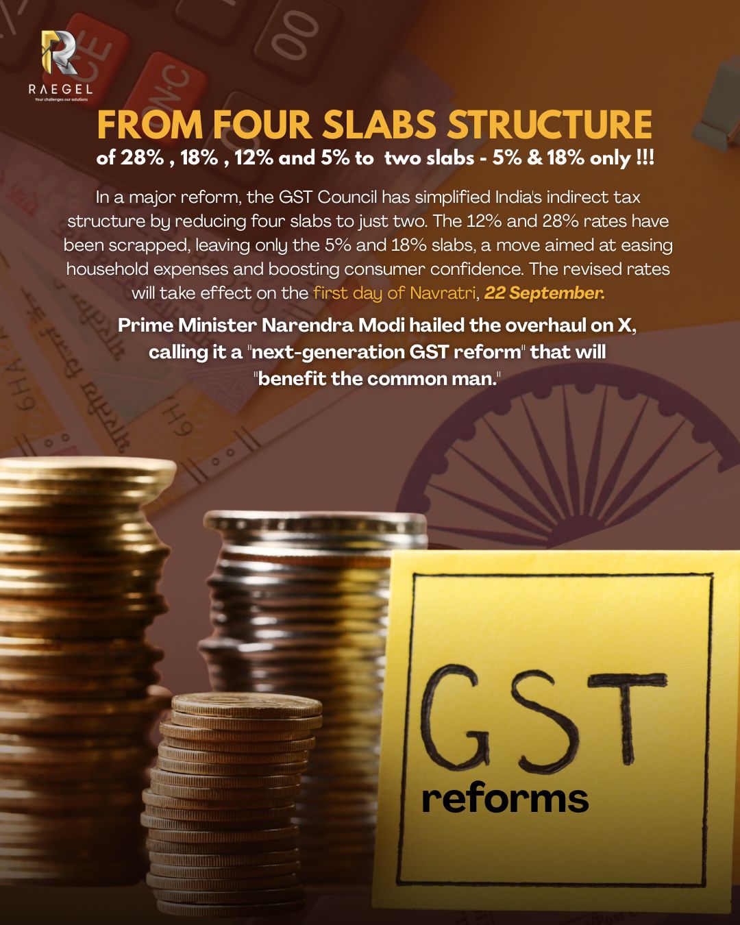 Following its most significant overhaul since its 2017 launch, India’s Goods and Services Tax (GST) has been streamlined into a new “GST 2.0” framework. Announced by the GST Council on September 3, 2025, and effective from September 22, 2025, these reforms aim to simplify the tax structure, reduce the burden on consumers, and boost the economy.